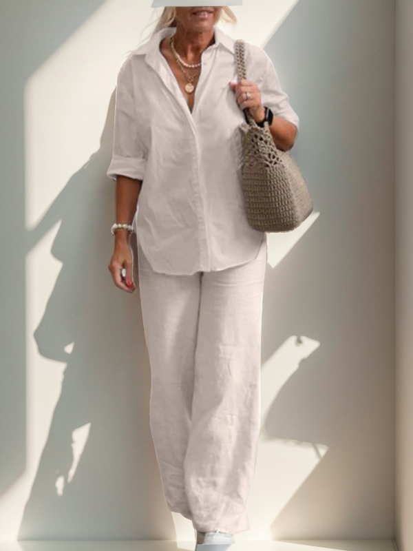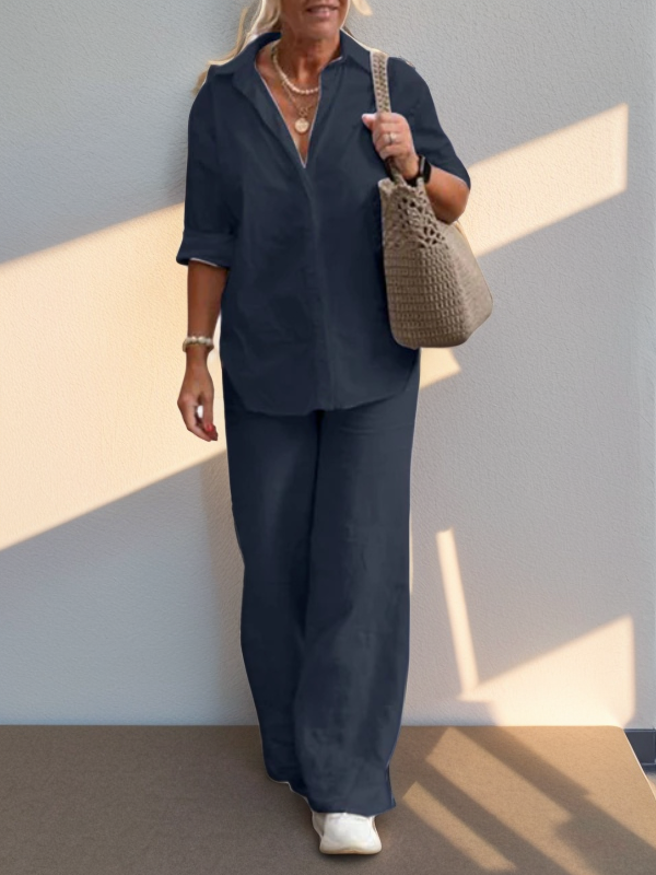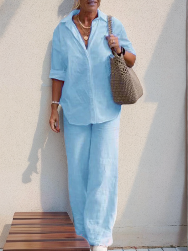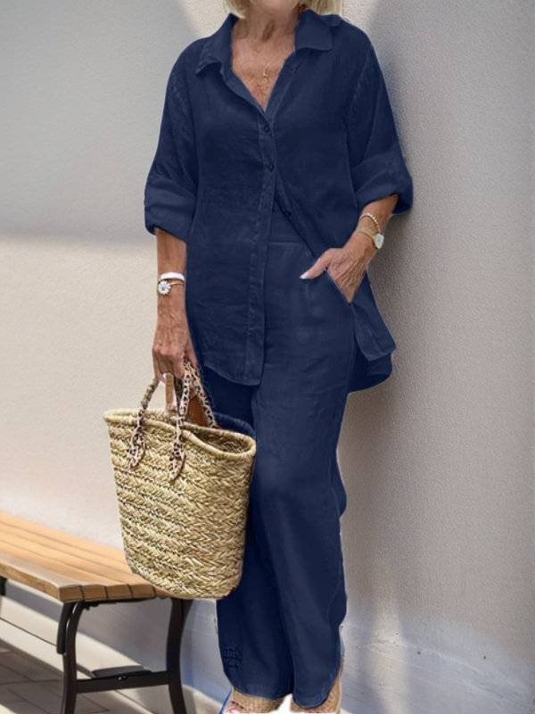 - Comfortable Fit - Loose-fitting trousers and an airy shirt create a flattering A-line silhouette.